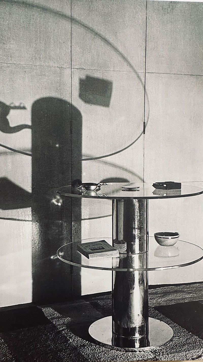 В 1925 г. Жан Перцель, движимый желанием впустить свет в своих изделиях начал производить их из стекла. Он в поиске элегантности и чистоты форм собственноручно создавал предметы. Каждая работа подчеркивала архитектуру места, которое послужило вдохновением к ее созданию. Его предметы и сегодня переиздаются и кажутся актуальными.